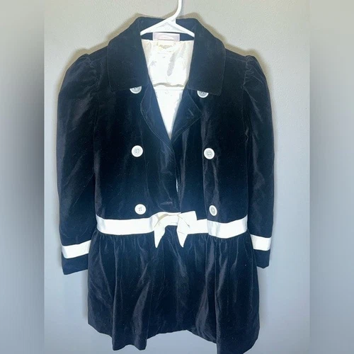American Girl Black Velvet Coat Girls Black/White w/ Bow Size 8