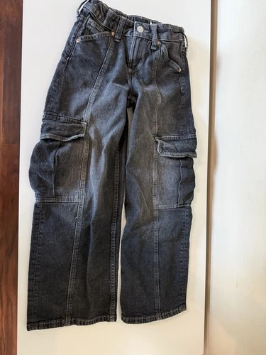 H&m Girls Cargo Pants Denim Size 8/9 Years Black/gray