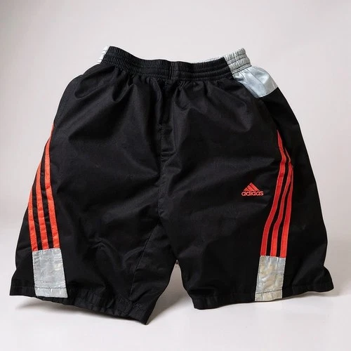 Adidas Kids 3 Stripes Shorts Youth L Black Orange Nylon Athletic Vintage