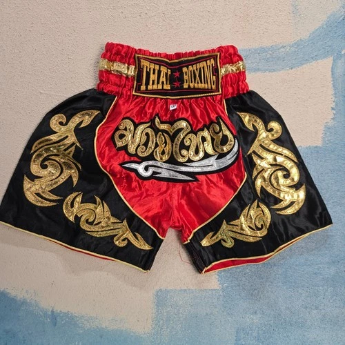 Kids Thai Boxing Muay Thai Shorts Red Black Gold Satin XXS Trunk Kickboxing Gear