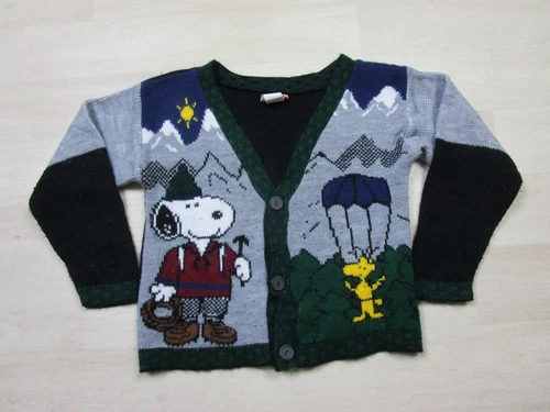 VTG Kids Youth (M) Snoopy Friends All Over Print Knit Cardigan Sweater Peanuts