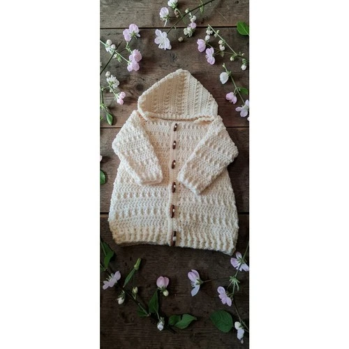 Hand Made Crochet Hooded Baby Cardigan, Cream Textured Knit