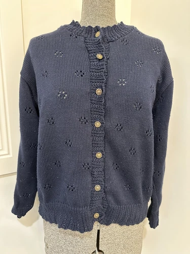 Vintage desert road australia cotton blend knit flower cardigan jacket size L 14