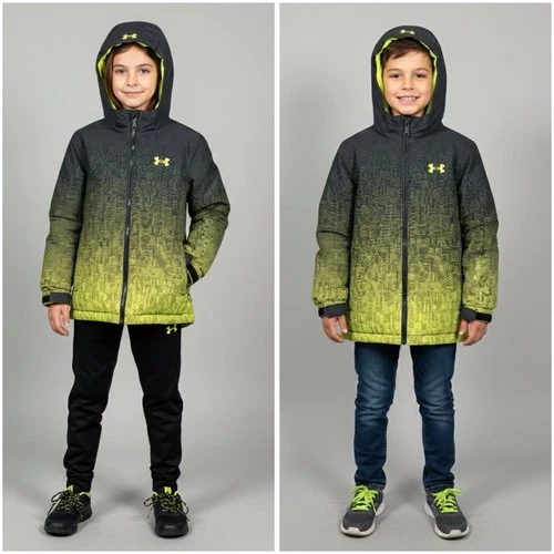 Under Armour Kids Full Zip Hooded Winter Snow Insulated Black Neon Jacket 5