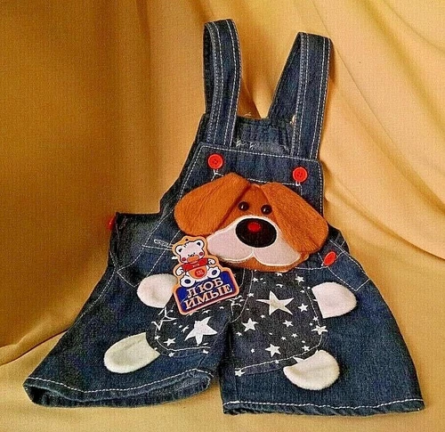 DENIM JUMPER CHILD OVERALLS SHORT PANTS PLUSH DOG RUSSIAN BRAND CENTURY STAR.