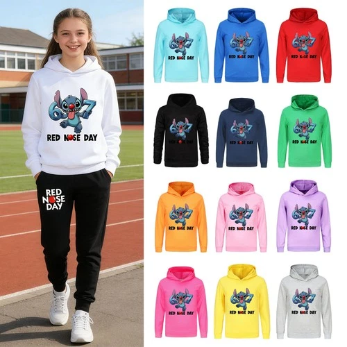Boys Girls 67 Funny Lilo Stitch Hoodies Red Nose Day Kids Jumpers Sweatshirt Top