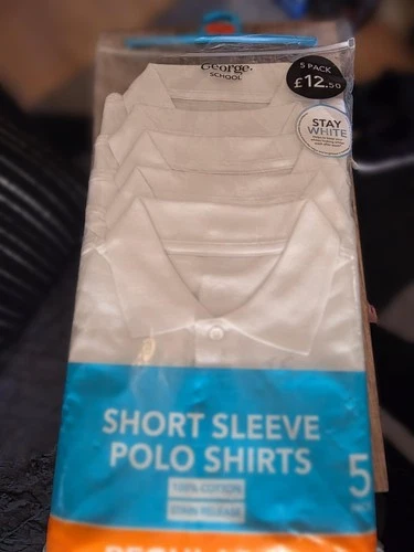 George short sleeve polo shirts pack of five, 11 to 12 yr, brand new sealed item