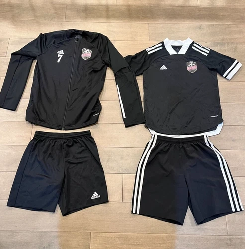Adidas Bend FC Timbers Club Soccer Jersey Jacket Shorts Youth Kids M 11-12Y/152