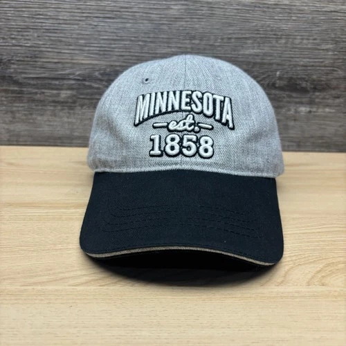 Minnesota Hat Cap Strap Back Gray Black Est 1858 State Pride Souvenir MN Impact