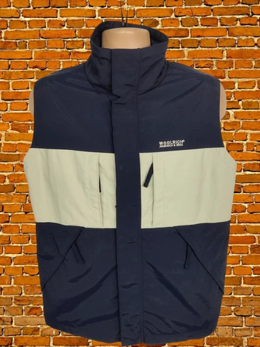 MENS WOOLRICH MEDIUM NAVY BLUE BEIGE ZIP UP WEATHER PROOF COAT JACKET GILLET