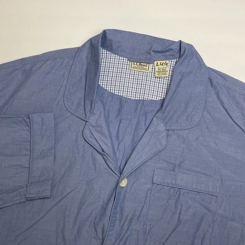 LL Bean Sleep Shirt Men’s XXLT Long Sleeve Button Up Blue Cotton Sleepwear