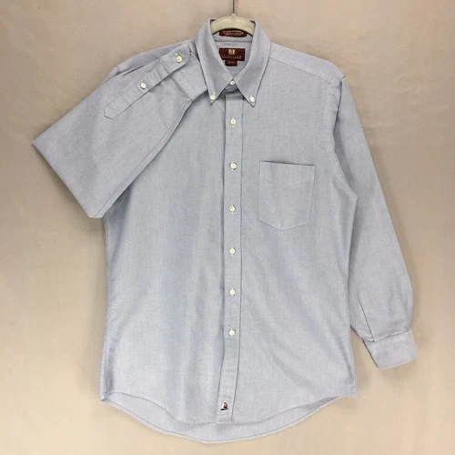 vtg Nordstrom Button Up Shirt 15-32 Blue Oxford Cotton Long Sleeve Pocket