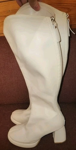 Ivory GoGo Boots 255(1.5) Size 9 Block Heel 3" Halloween Hippie New