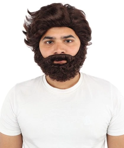 Adult Men Brown Wig with Moustache & Beard Set, Complete Wigs & Facial Hair Set