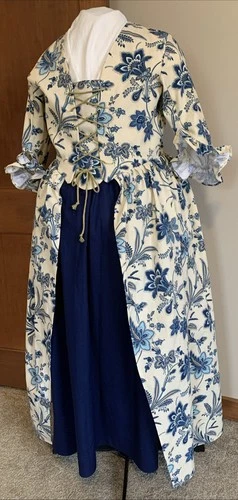XL Outlander, Colonial/Rev War, Blue Botanical Cotton Canvas Overdress/Gown NWOT
