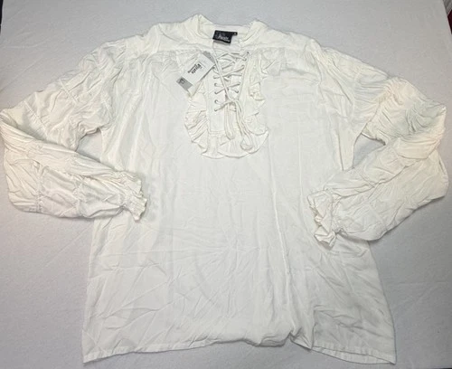 Pirate Dressing White Lace Up Pirate Cosplay Shirt XL Renaissance Costume