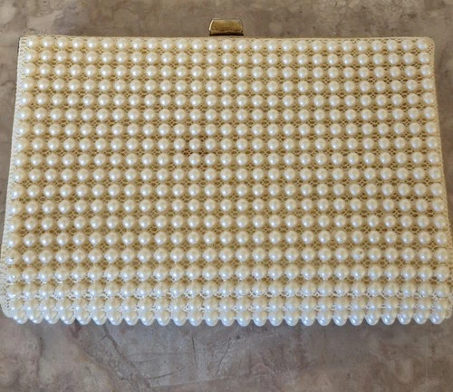 50s 60s Vintage JR Julius Resnick USA Pearl Beaded Evening Bag Clutch Purse RARE