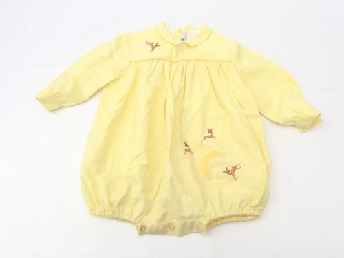 Vintage Baby Grow 70s 80s Viyella House Embroidered Deer Collar Yellow Unisex