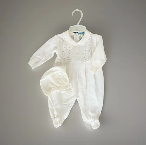 Baby Superstore VTG Boys 3-6 Mo Christening Baptism Outfit Footed One Pc & Cap