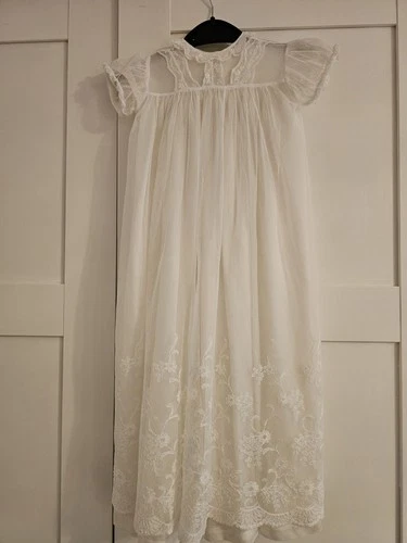 Vintage Christening Gown fine handmade lace - baby dress - heirloom