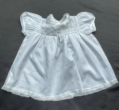 Baby Baptism Christening White Dress Madonna by Haddad Short Sleeve Lace Trim