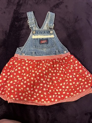 Old Navy Baby Denim Jumper Dress 6-12M Red Daisy Floral Gingham Country Summer
