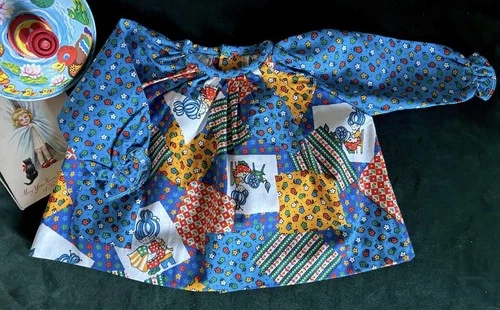 Vintage Baby Dress Angel Top Peridot 70s Rare Patchwork Floral Print doll bear ?