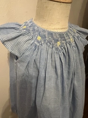 VTG Gingham Smocked Bishop Dress Yellow Flower Embroidery Flutter Sleeve Easter