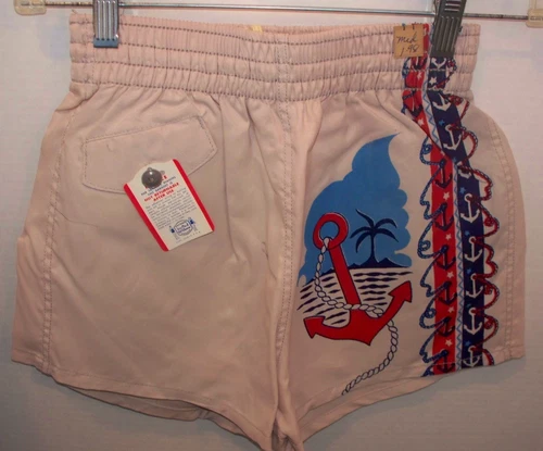 Vintage 50s Nautical Swim Trunks Boys Medium Shorts USA Made NEW old Stock