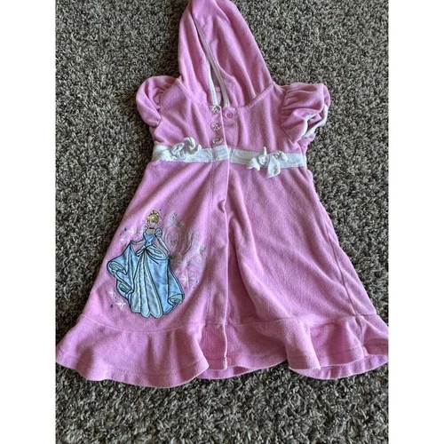 Disney Princess Cinderella Pink Hooded Terry Cloth Swim Cover Up Dress