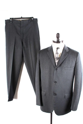 Vintage 1960s Dark Gray Wool 3 Button Suit Mens Size 42
