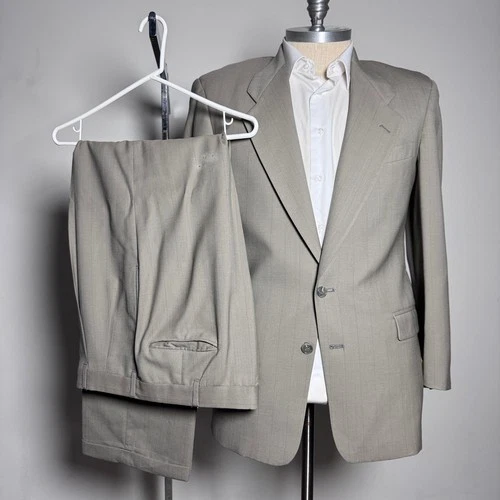 Pierre Cardin Suit Mens 42R 37x32 Gray Pinstripe Wool 2-Button Vintage Blazer