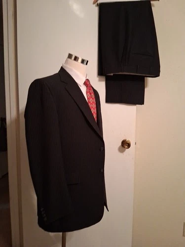 Alfred Downing Vintage Suit Sz44R Black Pinstripe 2button #2602