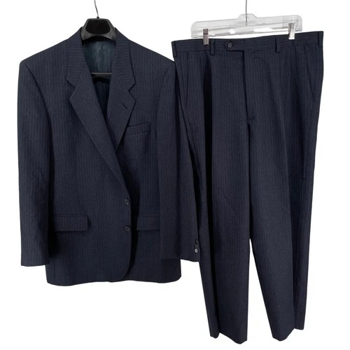 Vintage Givenchy Suit Men 46S 38W* Custom Navy Blue Pinstripe Wool Beverly Hills