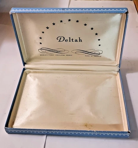 Vintage Deltah simulated pearls case only with satin lining & hinged lid 6" x 4"