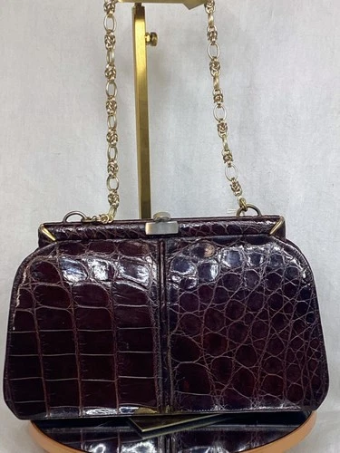 vintage ladies brown crocodile Handbag in VGC with chain handle 554