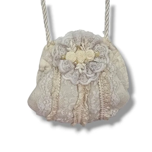 Marie Palmese Vintage Cream Lace Evening Bag Rosette Floral Bridal Pouch Bag
