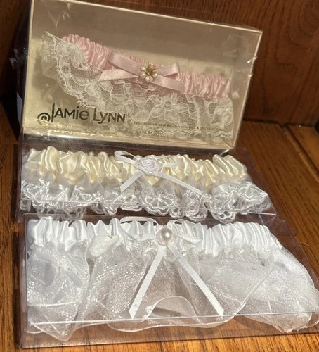 VTG Set of 3 Bridal Wedding Garter Belts: Jamie Lynn Pink, GTB White & Ivory