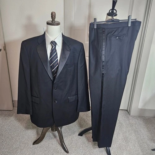 Calvin Klein Mens 48L Black 100% Wool Tuxedo 2PCS Suit 42x32 Pants