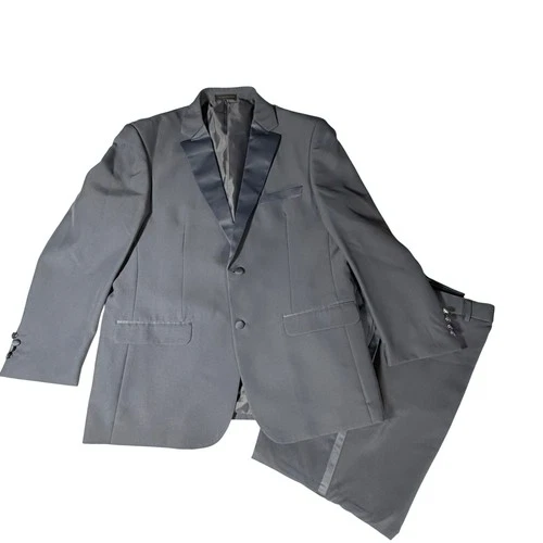 Lucci Collezione Mens Gray Tuxedo Suit Jacket Pants 44R 38R Formal Gala Event
