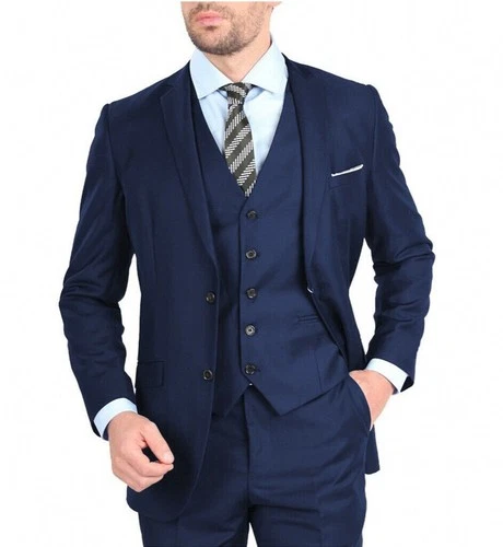 Men's Regular Fit 3Pcs Solid Suit Formal Blazer Vest Pants Set Wedding Business