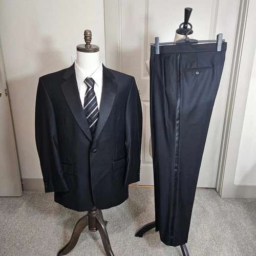 Jos. A. Bank 2pc Suit Mens Black 100% Wool Tuxedo 40R 34x30 Pleated Front Pants