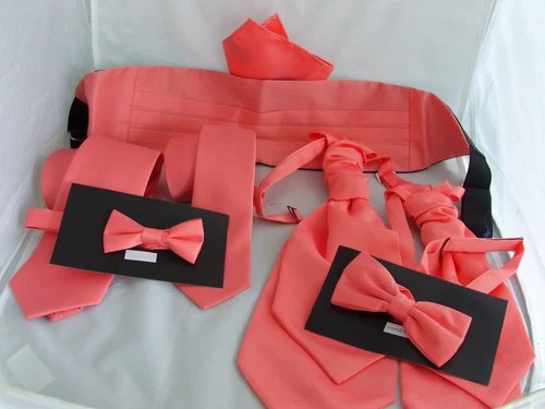 Coral-Salmon Collection>>Polyester Cravats-Hankies-Bow ties-Neckties-Cummerbunds