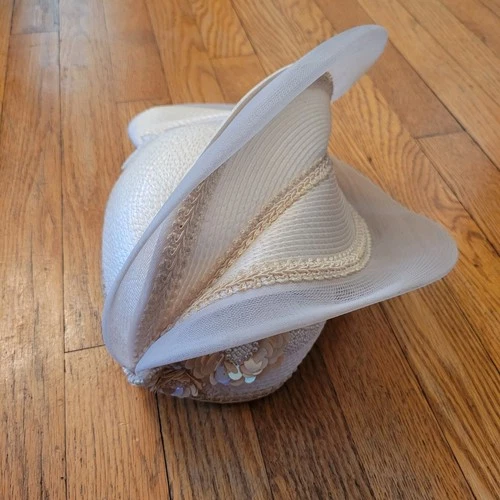 Deborah NY Ivory Hat Beaded Floral Embellished Formal Derby Decor 60s 70s USA