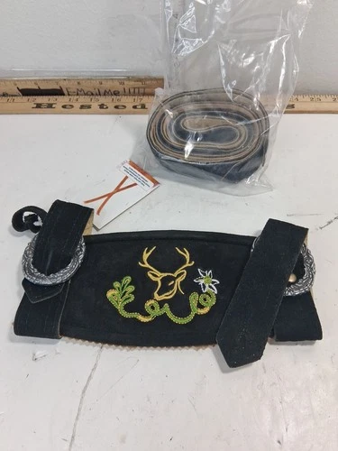 Bavaria Lederhosen Suede Shorts Strap Black Stage Oktoberfest German TD27D