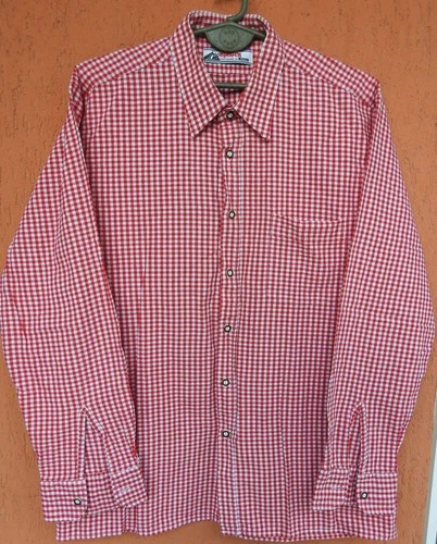 Traditional German Oktoberfest Shirt Alphorn Trachten Red Check Cotton Medium