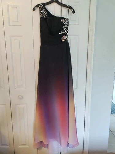 Rainbow 🌈 Formal Gown Sz.6 With Rhinestones & Glowing Sheer Fabric