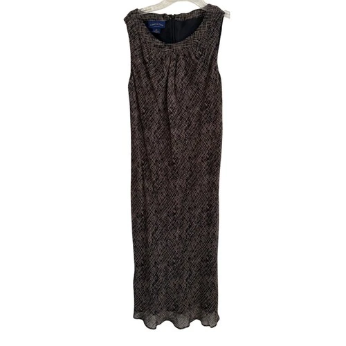 Charter Club Petite Brown Black Abstract Crosshatch Sleeveless Maxi Dress 6P