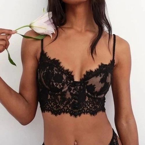 For Love & Lemons Faye Lace Bustier XS Black Strappy Back Corset Bra