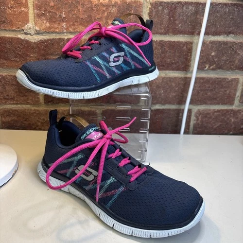 Skechers Women's Flex Appeal - Something Fun Blue Pink UK 4 Lightweight Trainers